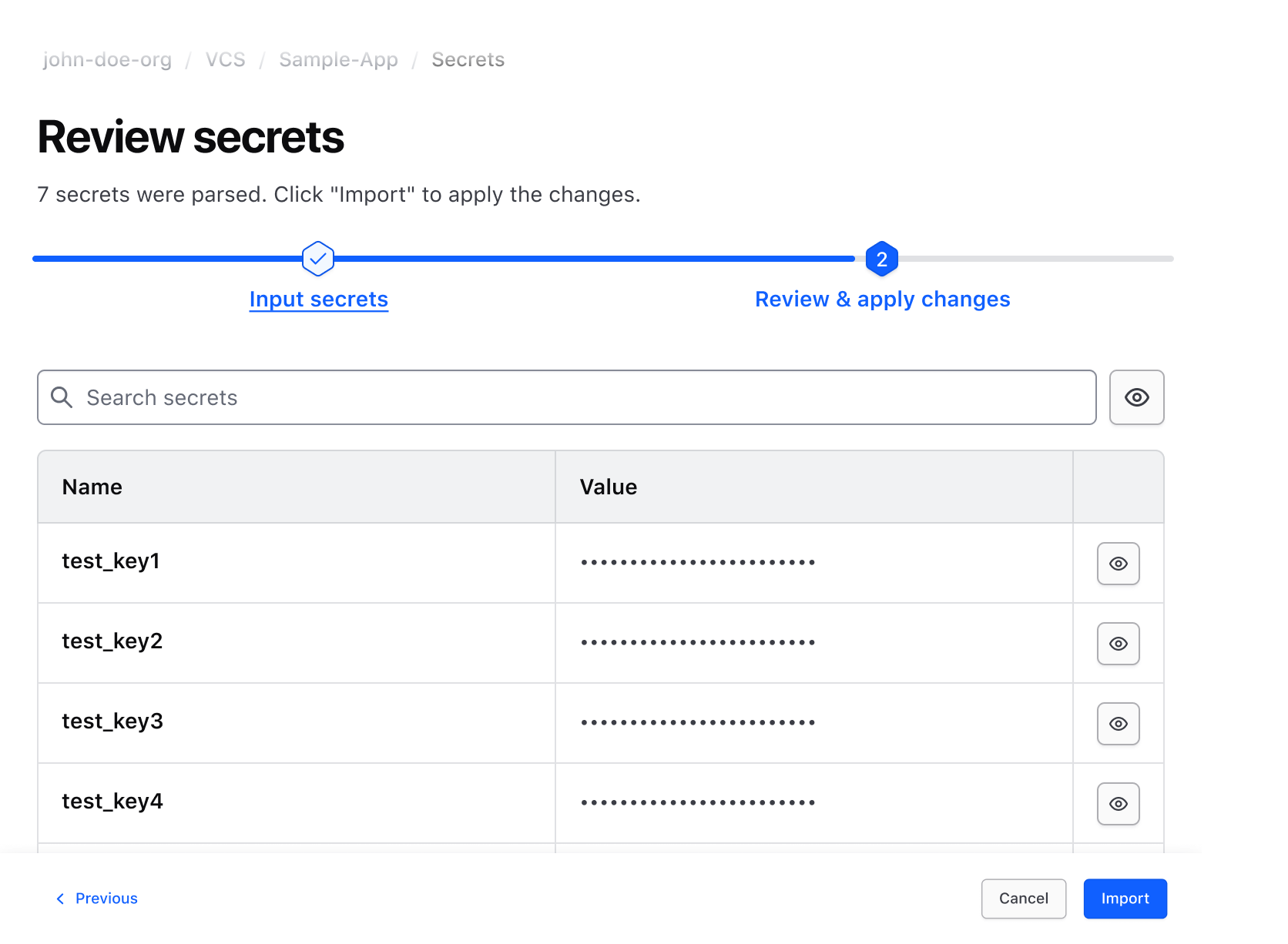 Move between completed and active steps.